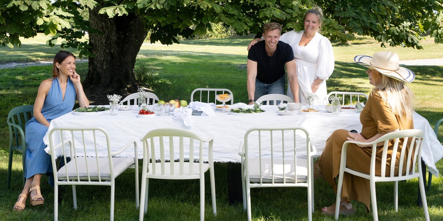 Om sommeren er det deilig å kunne spise ute så ofte vi bare kan. Velg spisebord og behagelige spisestoler så det blir god plass rundt bordet.