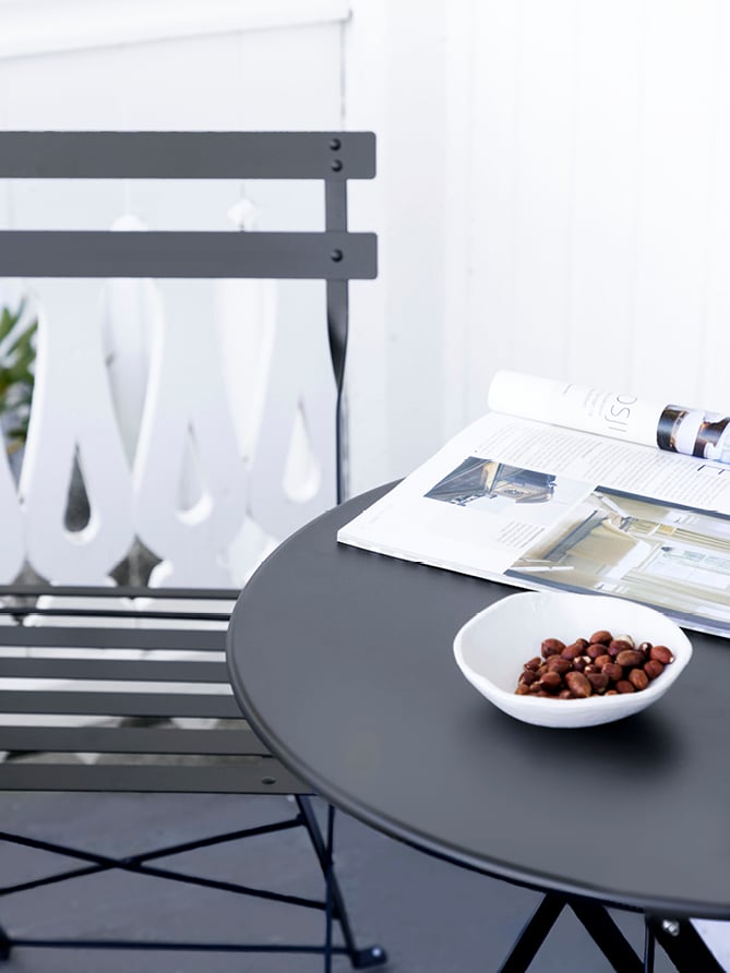 Et sammenleggbart cafesett er perfekt for deg med balkong eller en liten uteplass!