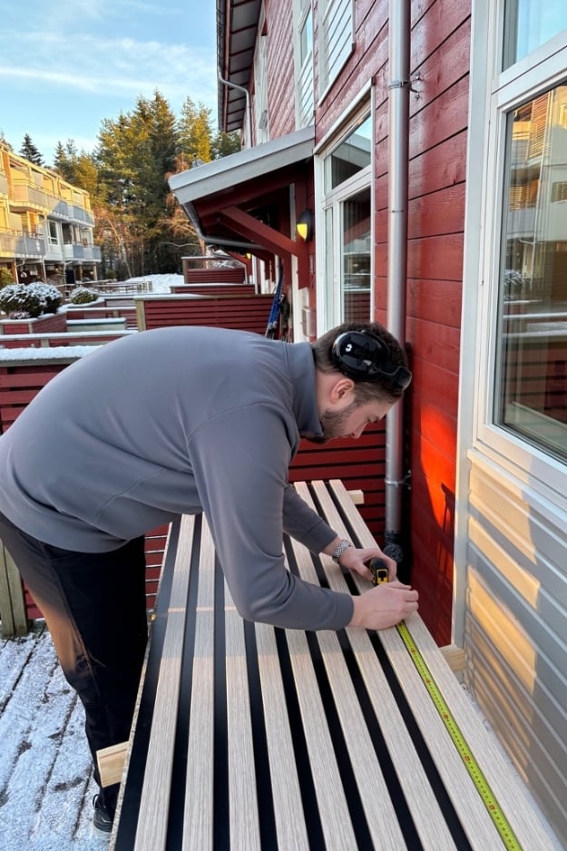 1. Mål lengde og høyde for hvordan du vil ha spileplatene og merk tydelig med blyant der den første spileplata skal stå.