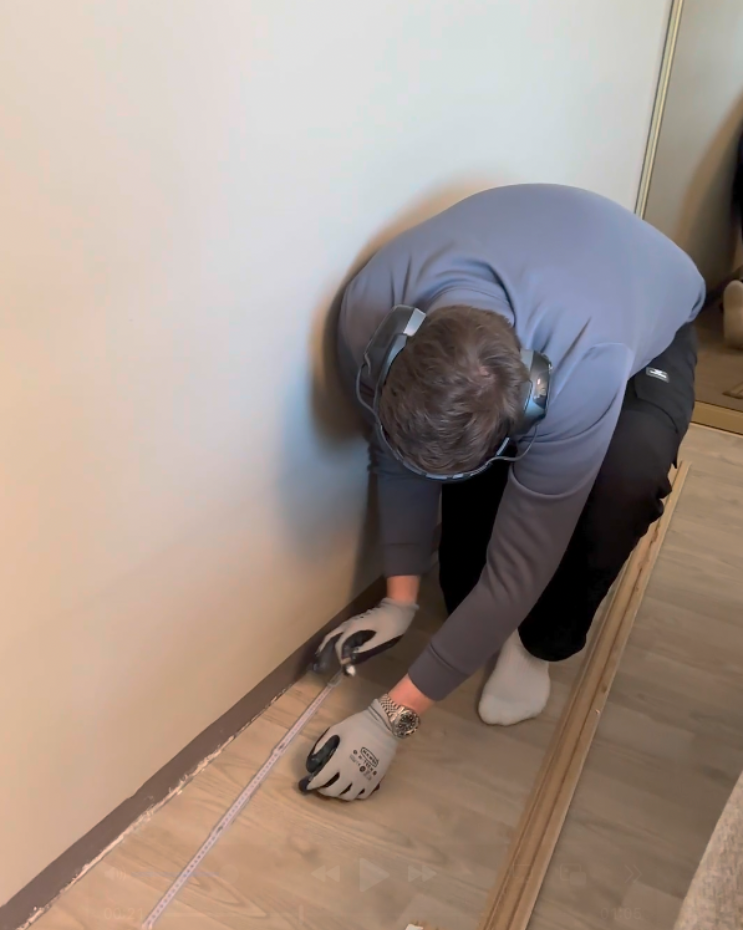 4. Tørk over veggen for støv med en mikroklut og gjør klart lim ved å klippe til hull og sette i fugepistol. Se etter hvilke spileplater som skal hvor før du setter i gang med liming. Spileplatene må passe ut fra sporet på den ene siden av plata.
