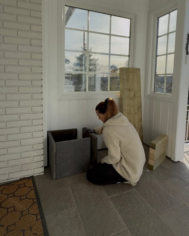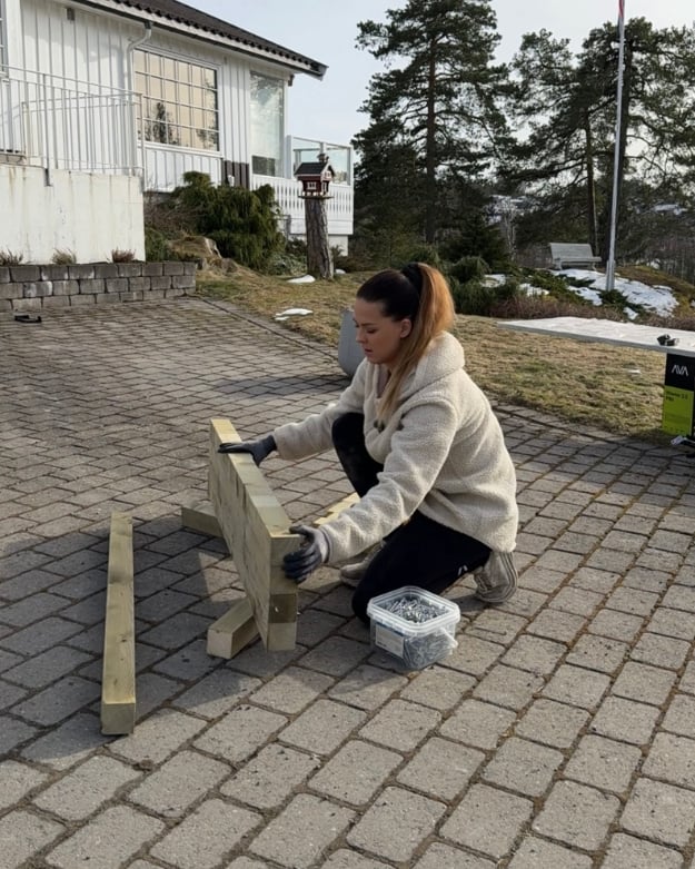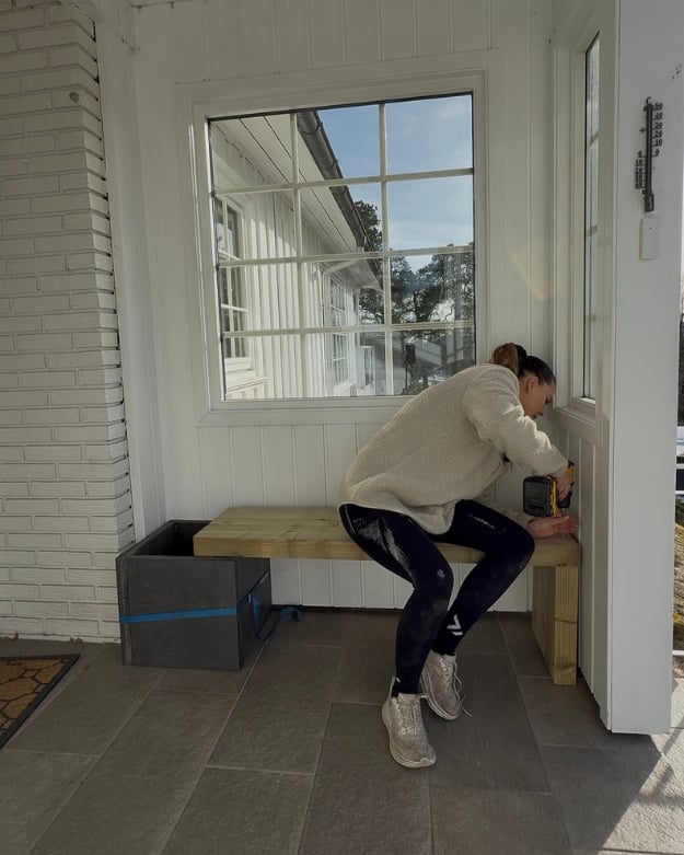 Plasser et dekortre eller en valgfri plante i en innerpotte i hellekassen og fyll opp med dekorstein eller mose for siste finish - Og vipps har du en helt unik benk som løfter inngangspartiet!