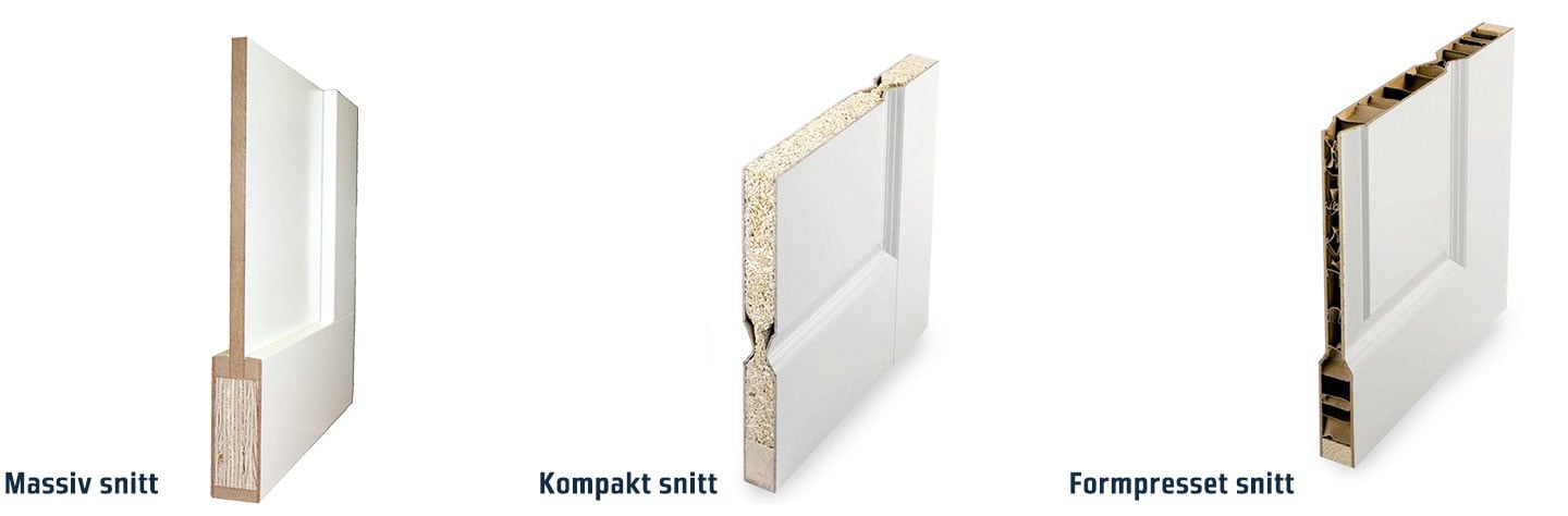 - En kompakt dør har det samme utvendige designet som en formpresset dør, men skiller seg fra sistnevnte ved at den er tyngre enn en formpresset dør. En kompakt dør har også den klart beste lydreduksjonen.