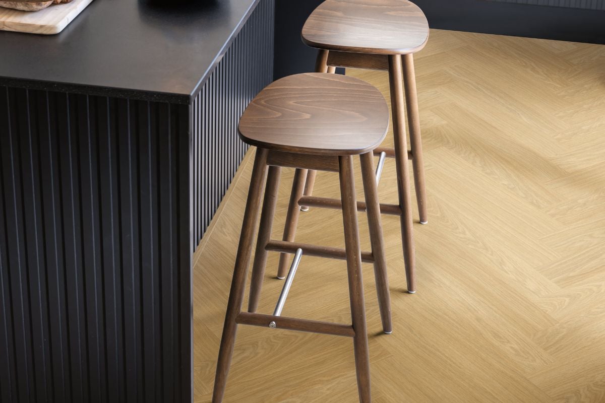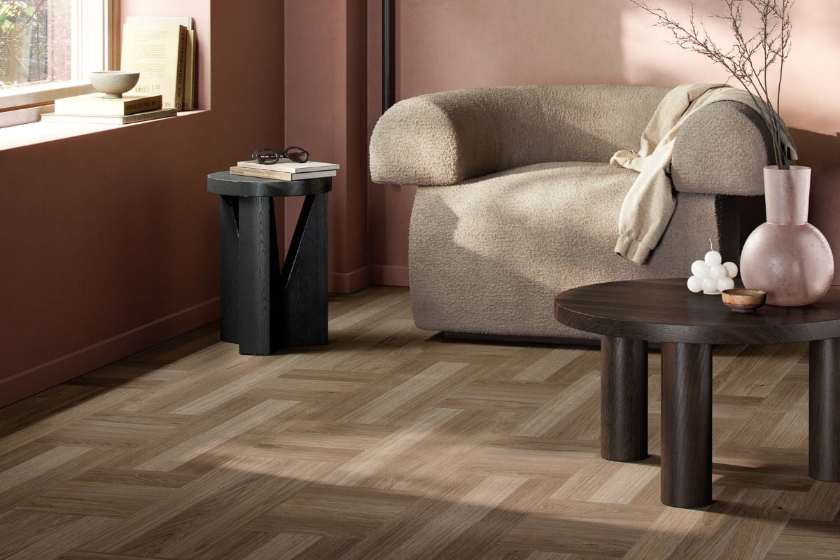 Vi vil se mer farger i 2025, og fiskebensmønster kan være i lyse eiketoner eller med mørke, dramatiske valnøttnyanser. Gulvet er tilgjengelig i mange ulike materialer som vinyl, parkett, laminat og fliser, som gjør at du kan finne ditt favoritt-gulv og matche det med resten av interiøret. I rom som gang og kjøkken vil vinylgulv i fiskebensmønster være et godt alternativ for fliser, og vil skape en stilren og delikat atmosfære.
