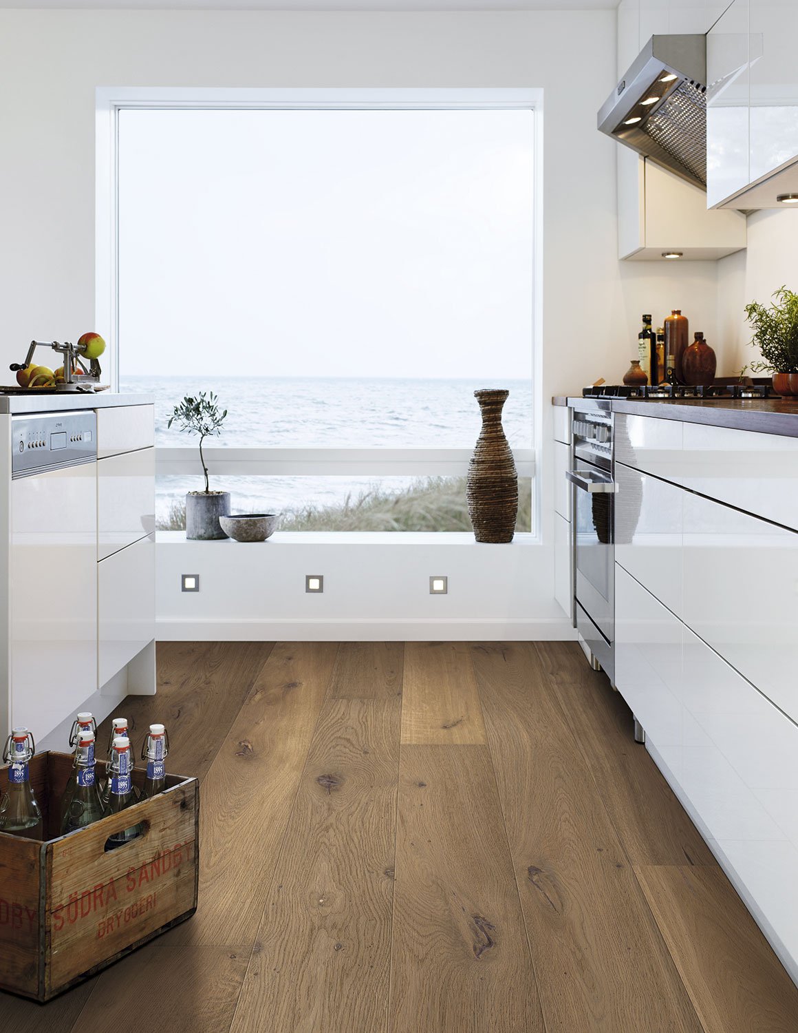 – Det fineste er om parketten blir lagt mot vinduene, men det er ikke alltid tilfelle at vinduene er plassert i den lengste strekningen av rommet. Dersom vinduene er plassert på motsatt side av lengderetningen, ville jeg prioritert å legge gulvet med lengderetningen, sier Knutsen.