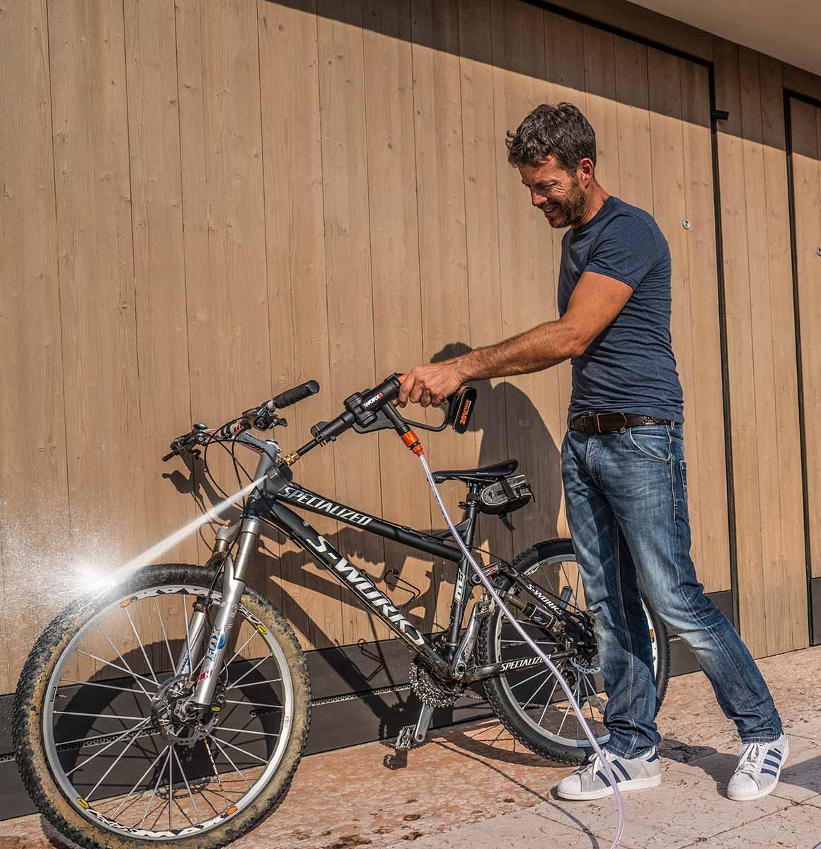 – Denne trykkspyleren er perfekt for oss aktive nordmenn. Den veier nemlig bare 1,7 kilo, er superpraktisk å ha med seg og kan bruke vannet fra en ekstern vannkilde. Du kan derfor trykkspyle både sykkel og bil med vann fra en bøtte eller til og med en innsjø. Trykket er 10 ganger høyere enn fra vannslangen, så effektiv er den også, avslutter Glende.