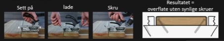 Dette kan du riktignok motvirke ved å markere hvor skruene skal settes inn, mens med skjult innfesting slipper du å tenke på plasseringen i det hele tatt. Det du heller bør tenke over er hvor mye tid, penger og vedlikehold du sparer ved å bruke Camo til å feste skruene på skrå.