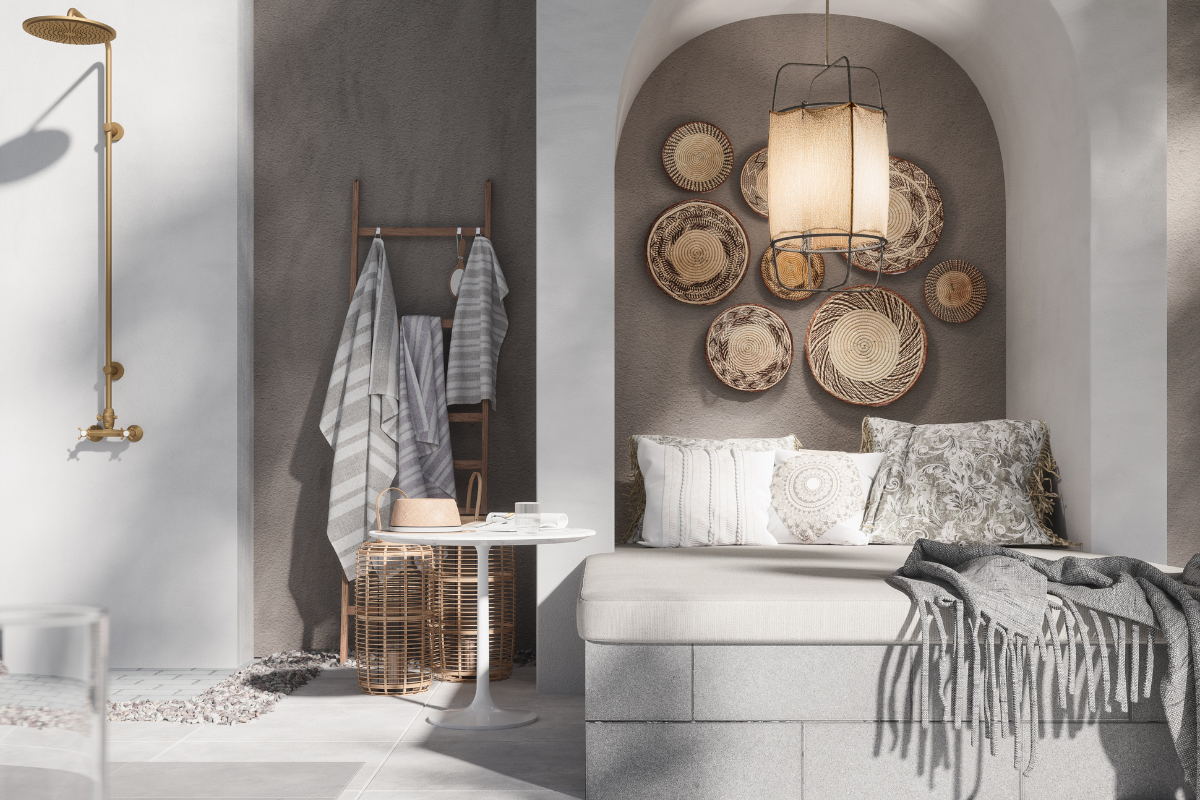 7. Legg til slutt på madrass og pynt med puter - og vips så har du laget en ferdig «daybed» klar til soling og late dager.