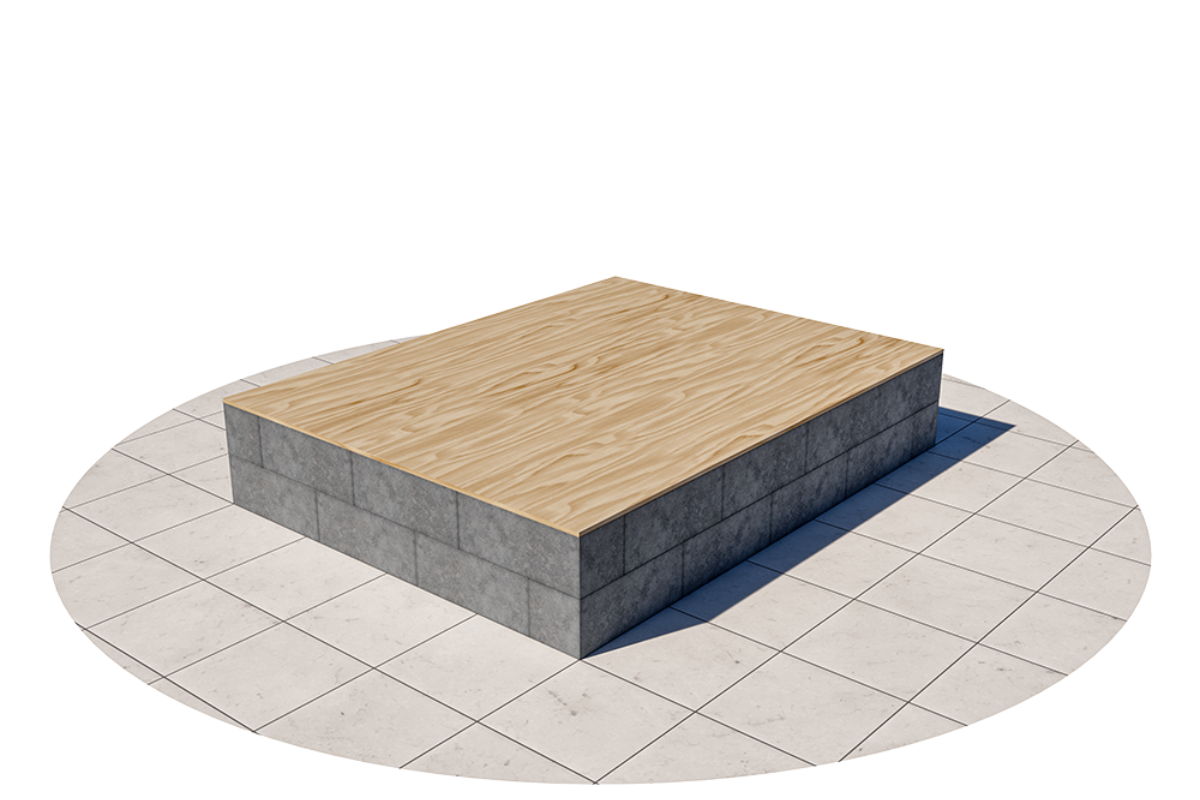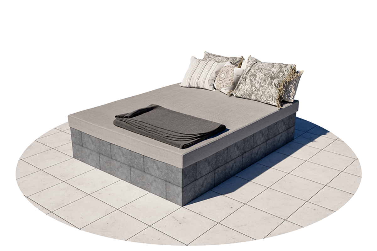 4. Plasser blokkene i neste skift i motsatt retning slik at ikke skjøtene kommer rett over hverandre. Det kalles forbandt. Plasser så et skift til med Pilarblokker opp på det forrige, slik at du til slutt har 4 små søyler inne i sengen.