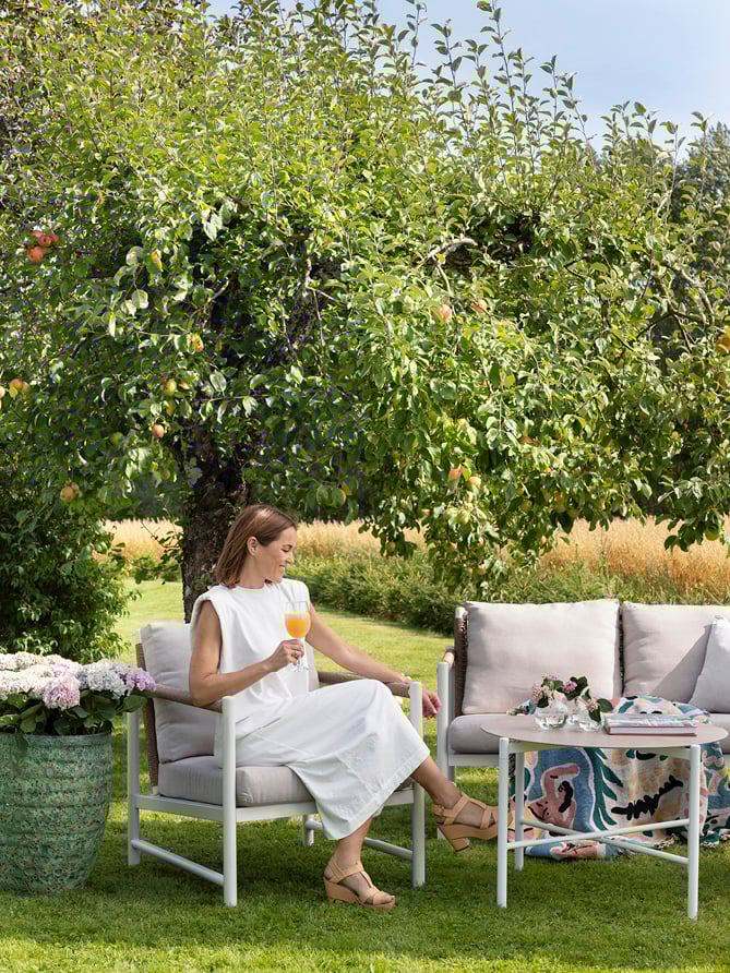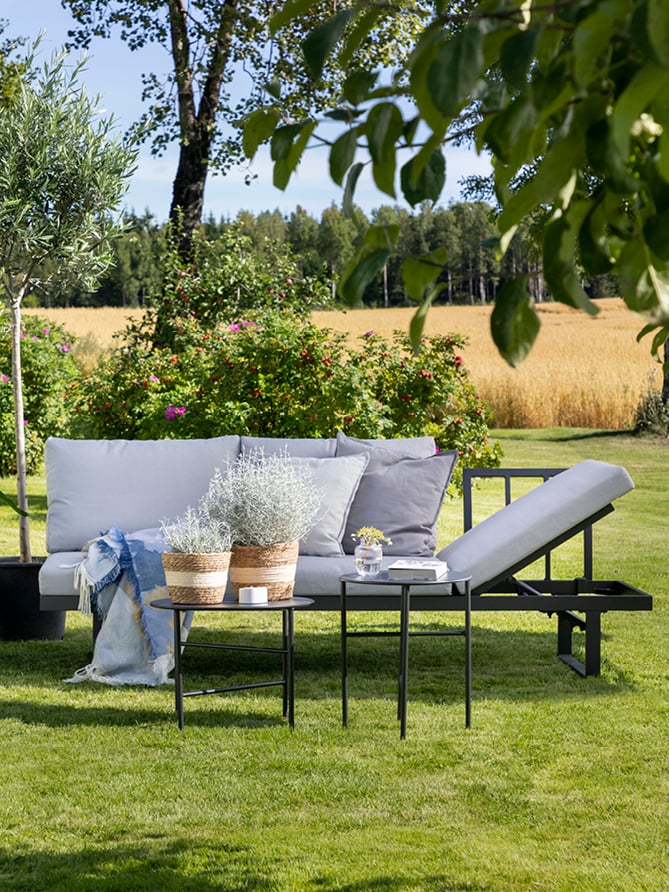 Et mindre bord er både praktisk og lekkert. Bruk gjerne flere bord i lik farge, med ulike høyder som styling til dine loungemøbler