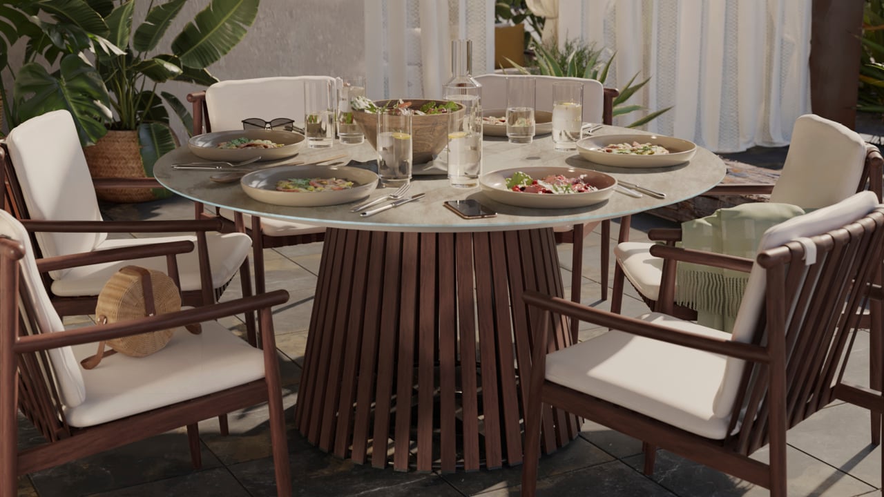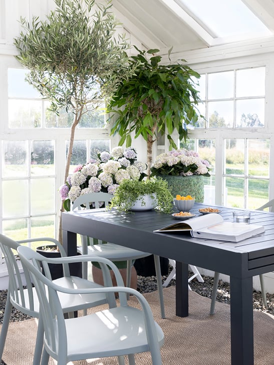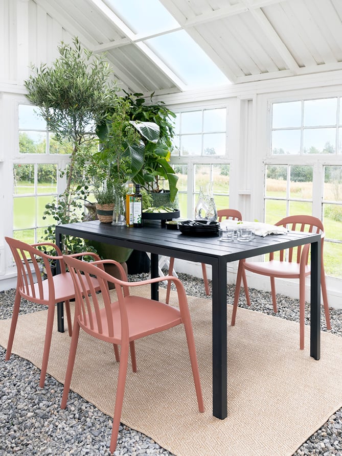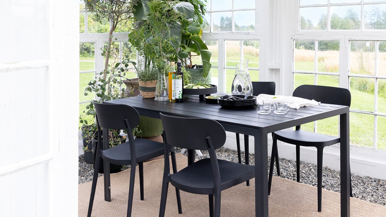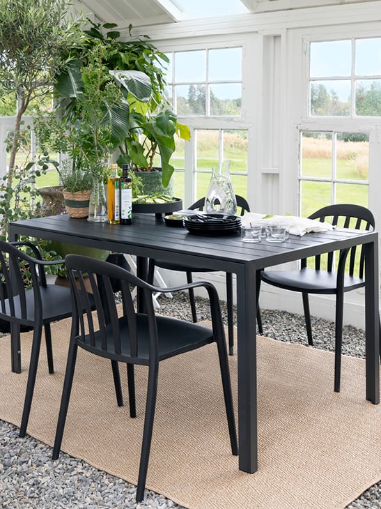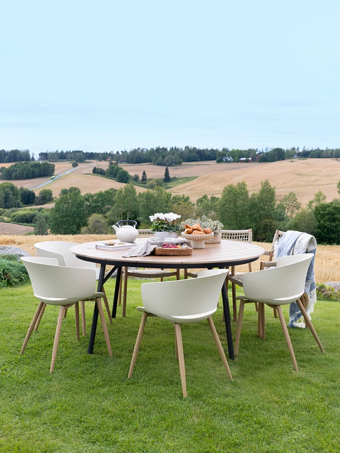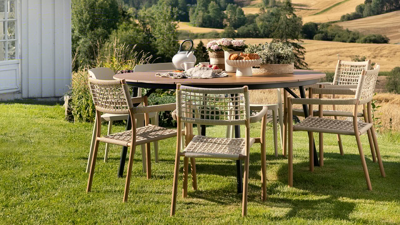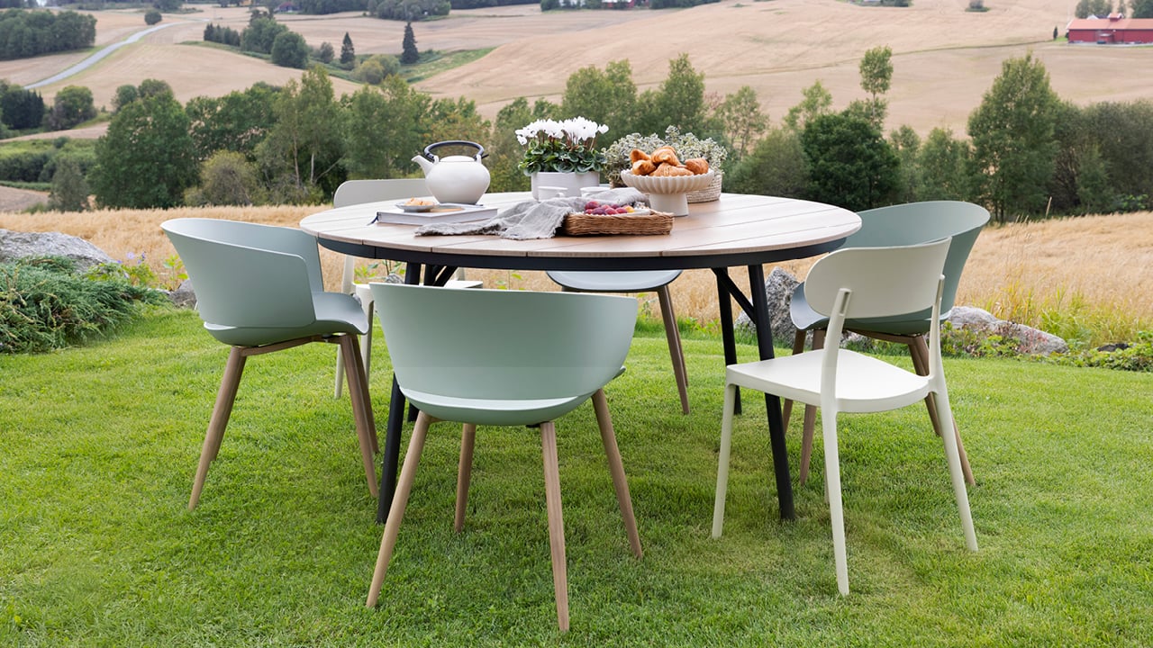 Om sommeren er det deilig å kunne spise ute så ofte vi bare kan. Velg spisebord og behagelige spisestoler så det blir god plass rundt bordet.
