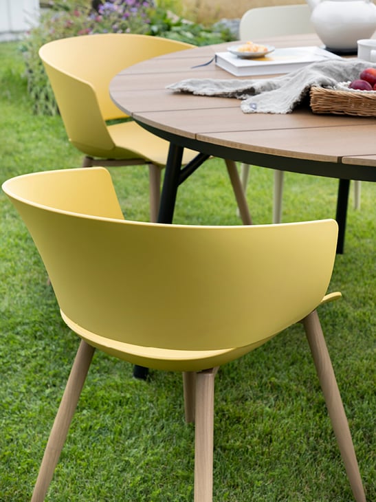 Med Vika stol i hele 8 forskjellige farger kan du velge en nedtonet og naturlig look eller en kul kontrast til din spiseplass eller ditt uterom!