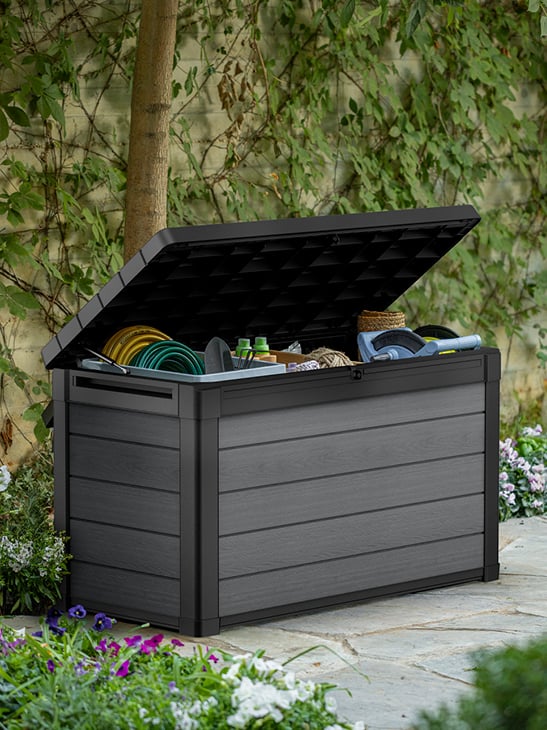 En putekasse er et stilfullt oppbevaringssted til hageputene når de ikke er i bruk – den blir også en naturlig del av uteplassen. Velg en putekasse som passer inn med resten av møblene og fyll den med puter eller andre ting.
