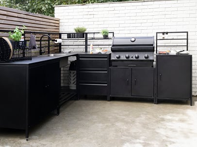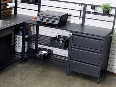 Skreddersy ditt eget utekjøkken med våre smarte moduler. Velg blant løsninger med både skap, skuffer, vask og ikke minst modul perfekt til din yndlingsgrill! Perfekt for både små og store uterom!