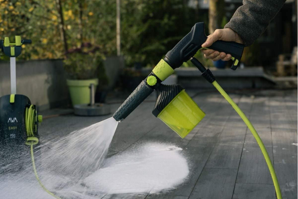 Skumkannonen lar rengjøringsmiddelet jobbe seg godt inn i overflaten. Med justerbare modeller som AVA Basic eller Premium Skumkanon kan du enkelt tilpasse både såpemengde og konsentrasjon etter behov.