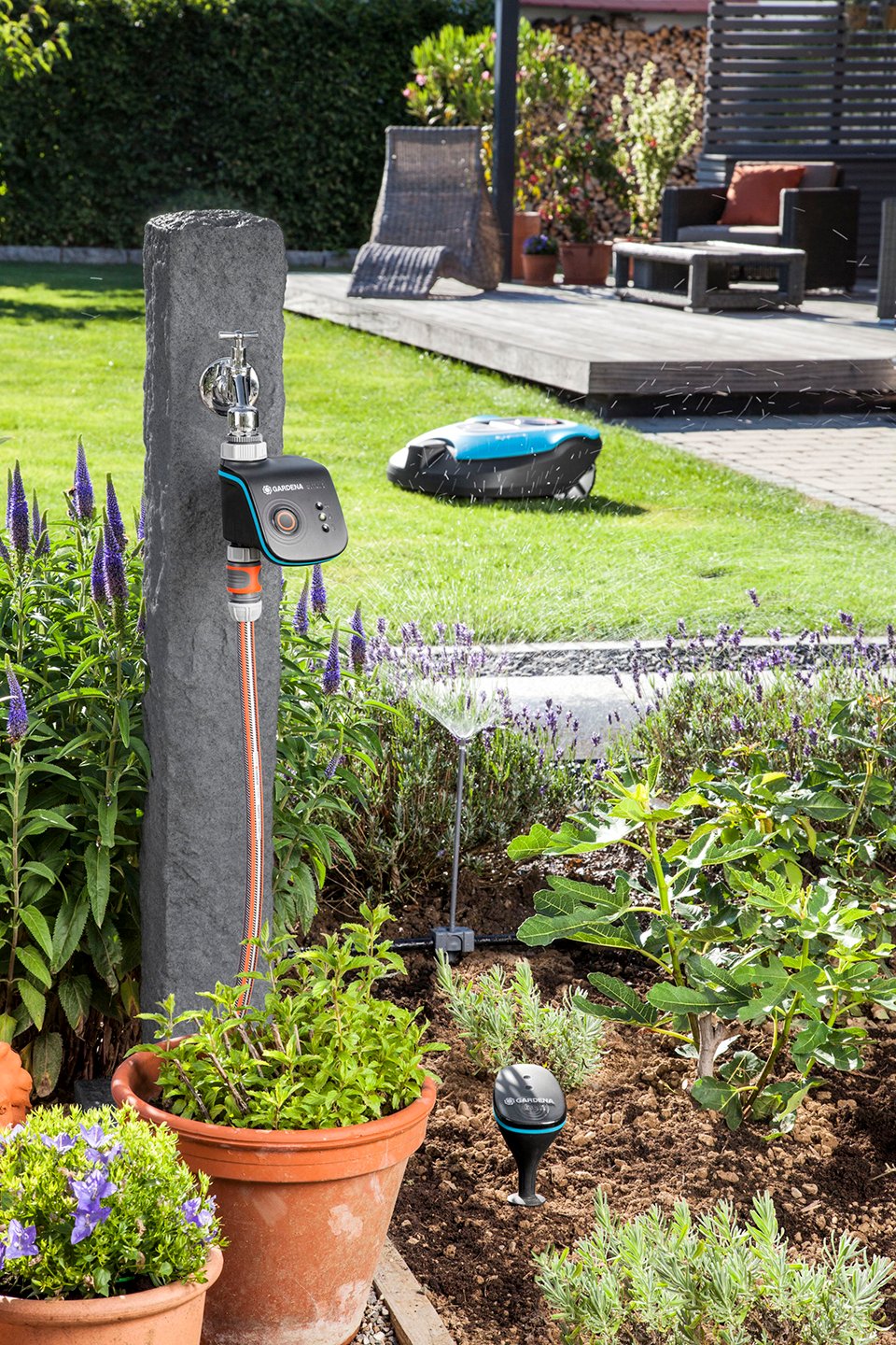 Gardena Smart Vanningssystem kan også kobles til Gardenas Smart Robotgressklipper, for å gi en travel hageentusiast full kontroll.