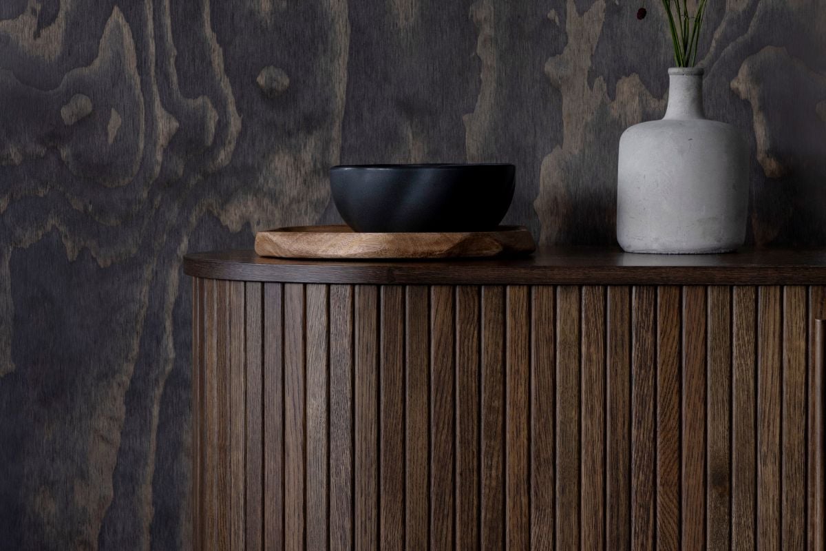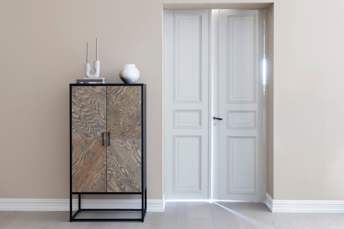 Treverk forteller historier – årringer, kvister og struktur avslører liv levd. Med Tyrilin Interiørbeis forsterkes dette naturlige spillet og gir både panel og finérplater et uttrykksfullt og dekorativt løft. Her er det kun fantasien som setter grenser! I det nye fargekartet viser Tyrilin hvordan finèrplater kan brukes både som vegg og som dekorative skapdører. Veggen og skapdørene her er beiset med Tyrilin Interiørbeis i fargen Lys Varde. Samme farge viser ulik effekt siden treverket på veggen trekker mer farge enn skapdøren gjør. Vi anbefaler alltid å teste fargen på samme type materiale som du skal beise – for eksempel ved å bruke avkapp fra prosjektet.