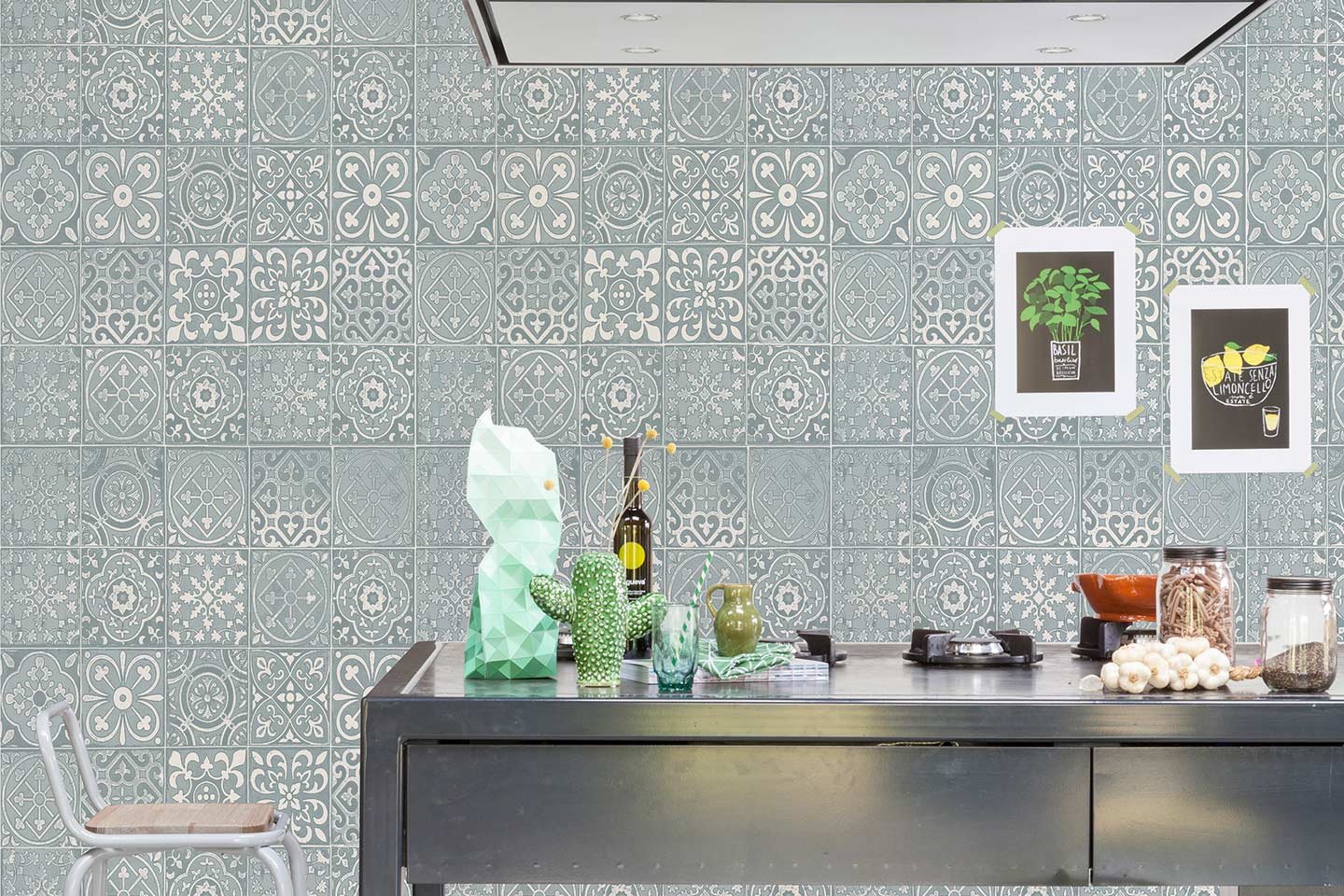 Søker du rolige, behagelige farger og tiltalende overflater har du mange muligheter. Disse stilfulle og historiske mønstrene fremmer en luksuriøs men avslappet atmosfære. Sirlig ornamentert, uten å bli rotete skaper den en lun og uimotståelig 1001 natt-følelse. Her fra et moderne kjøkken: