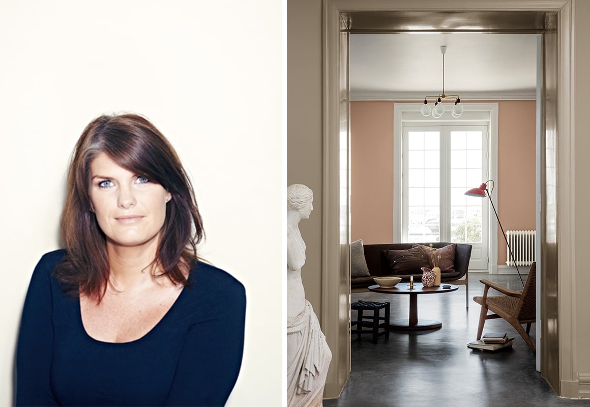 FIN KOMBINASJON: Cecilie Molvær Jørgensen har falt for kombinasjonen 10966 Almond Beige og 20047 Blushing Peach. (Foto: Einar Aslaksen og Line Klein/Jotun A/S / Lady)