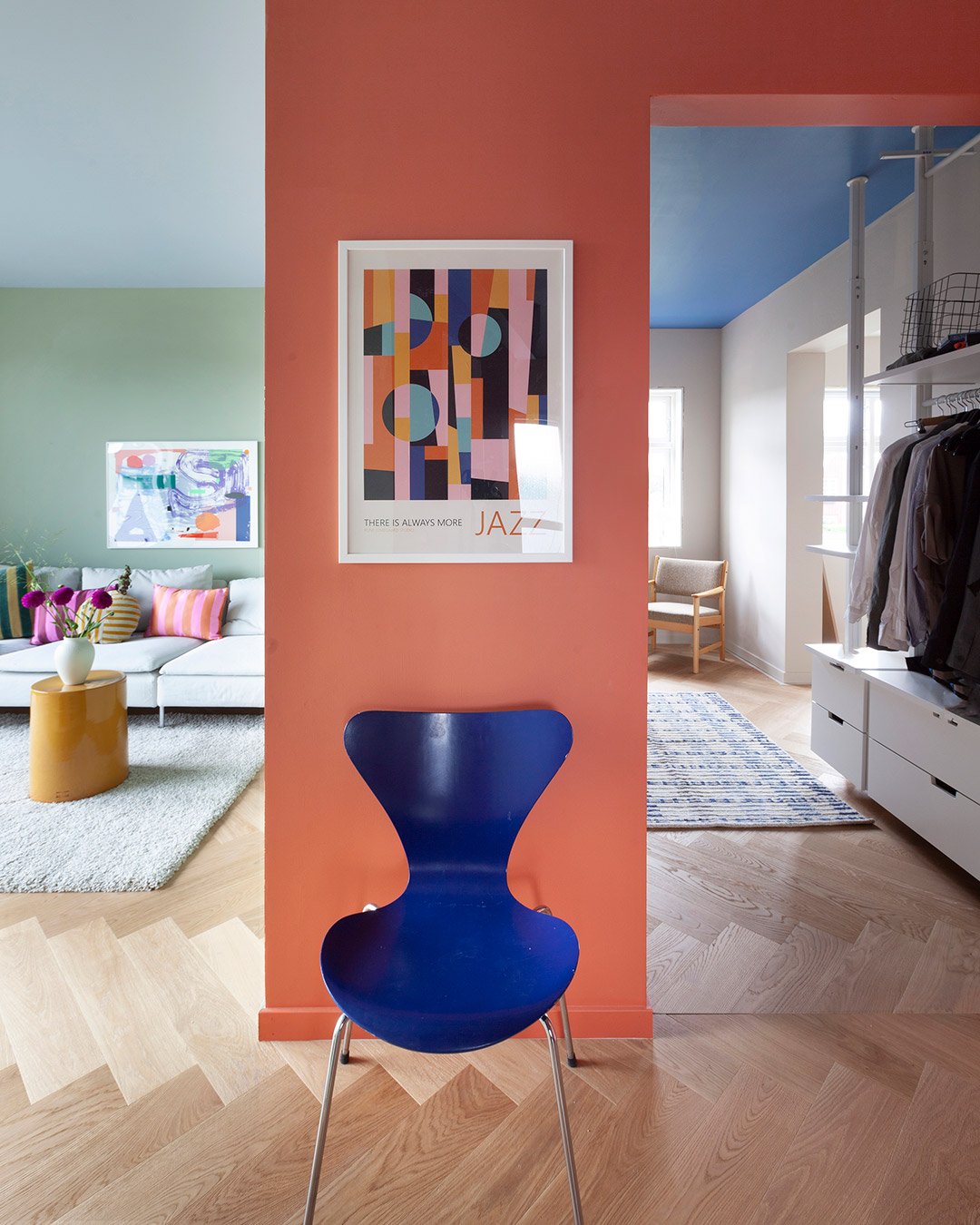 – Mørk Fersken, en klar oransje farge, og den lyseblå Blåse er jeg spesielt fornøyd med. Det er to farger jeg kanskje vanligvis ikke ville brukt i samme rom, men jeg synes de komplementerer hverandre samtidig som de overrasker, avslutter Similla med et smil.