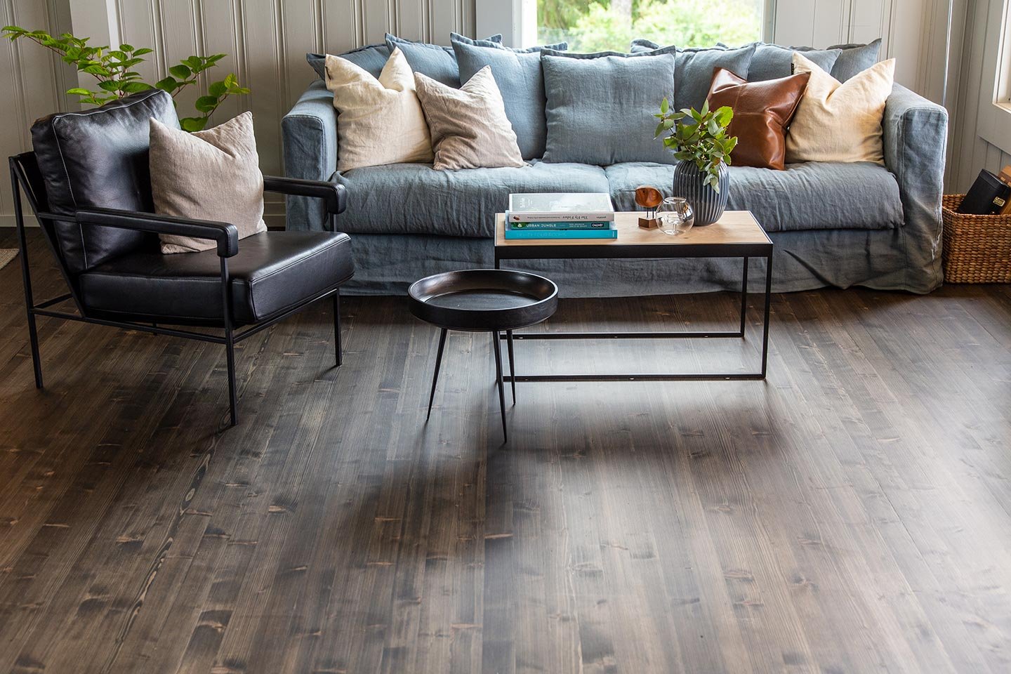 - Skap en rød tråd mellom de ulike rommene ved å velge farger som passer godt sammen. Ikke vær redd for å kombinere transparente og malte gulv. Fargen 992 Lava er lekker mot 2047 Ibenholt.