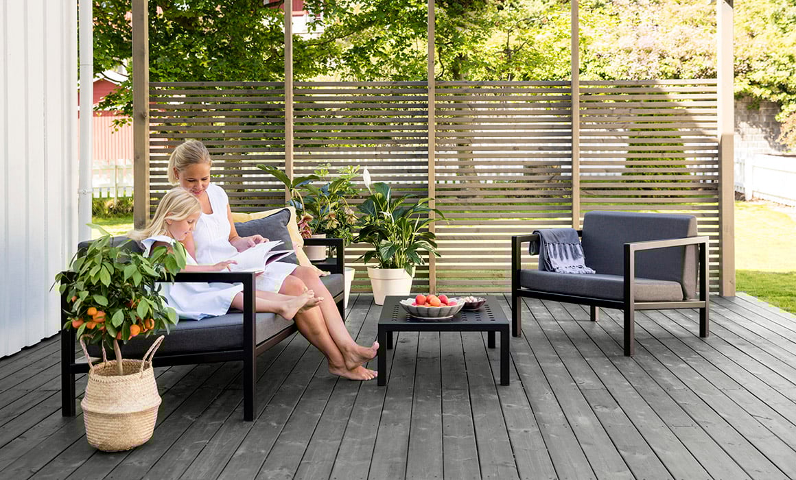 - Dersom du bygger ny terrasse er det viktig å huske på at bordene må få tørke i 4-8 uker før de behandles. Har terrassebordene stått ubehandlet i flere måneder, anbefaler jeg en grundig vask med Jotun 2-i-1 Husvask og soppfjerner for best resultat, forteller Hagen.