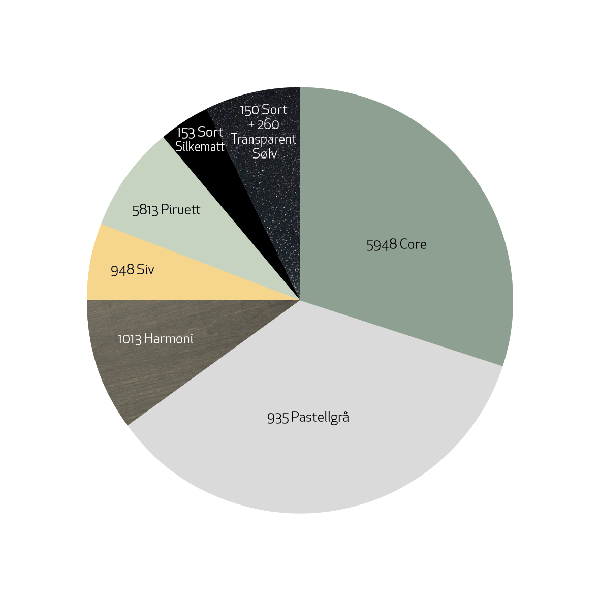 En fargekake er et nyttig verktøy gjør at du lettere ser hvordan fargene gjør hverandre bedre. De store kakestykkene er farger som egner seg godt på store flater som gulv og vegg.