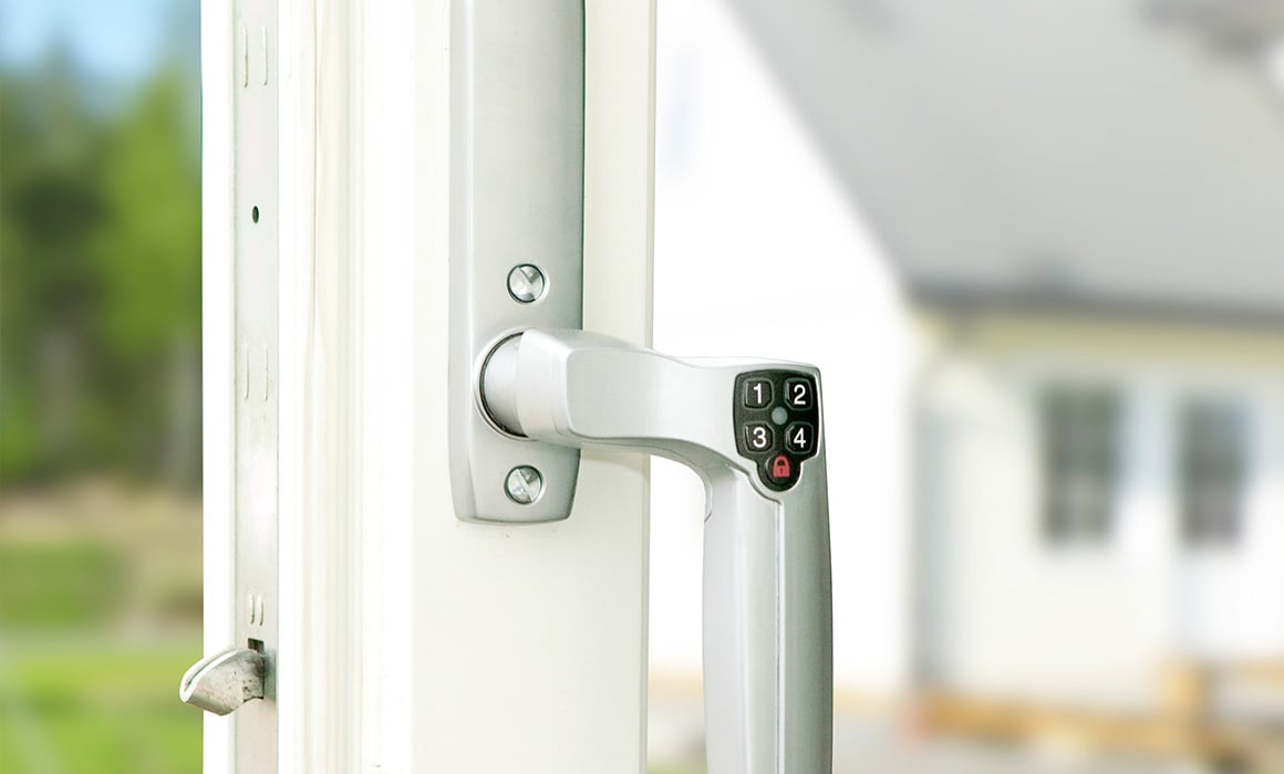 Alternativet er et dørhåndtak med integrert kodepanel. Da kan du på en praktisk og sikker måte låse balkongdøren slik at ikke uvedkommende kan knuse glasset og låse opp døren.