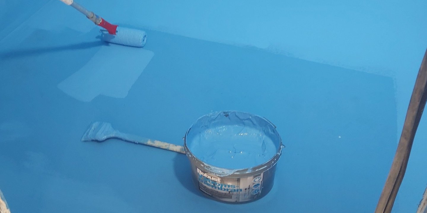 Når alle detaljer er på plass, kan selve membranen påføres. Robust våtromsmembran påføres vanligvis i 1-2 fyldige strøk på både gulv og vegger.