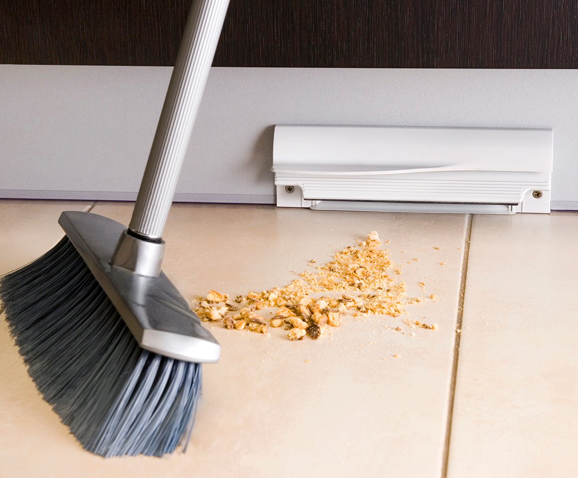 GENIAL: Et spesialuttak på kjøkkengulvet gjør rengjøringen superenkel!