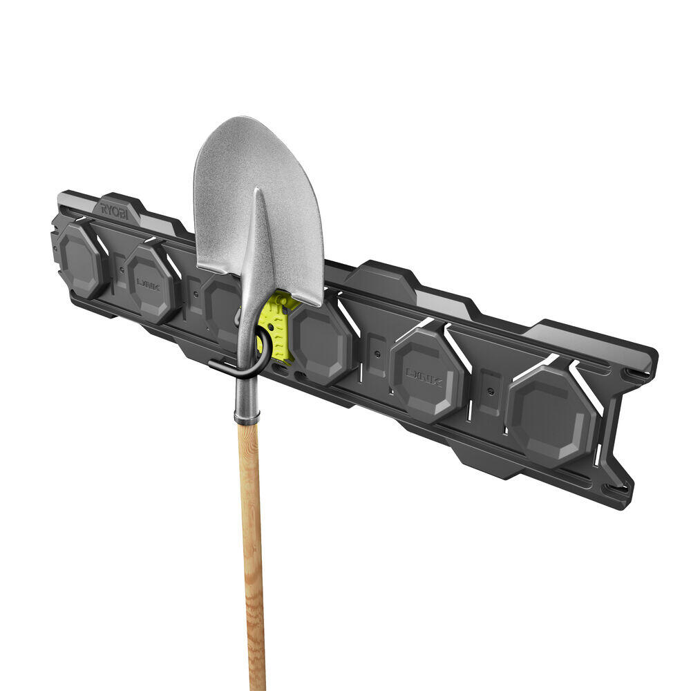 Ryobi®Link S-krok er ideell til oppbevaring av spader, koster og hageredskaper. Har et slitesterkt design i stål med en vektkapasitet på 22,7 kg.
